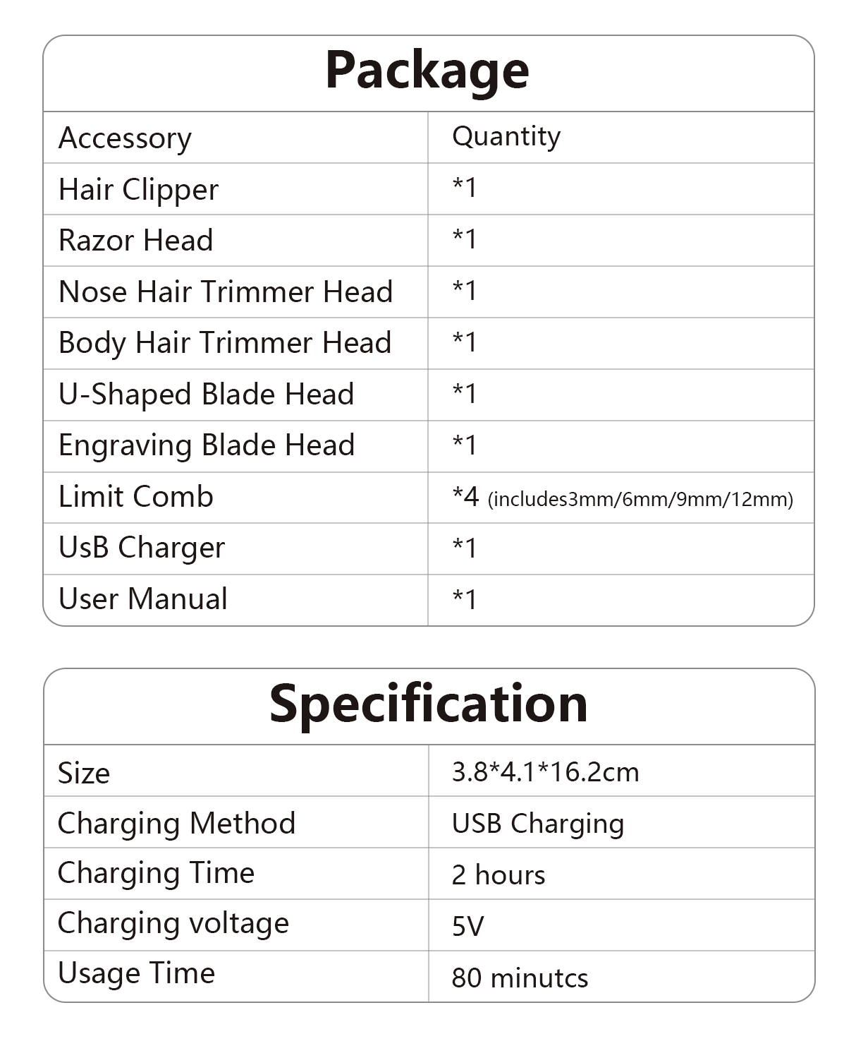 - Multi-Functional Heads - All-in one grooming system, offering great value for all styles—from bald to sculpted.