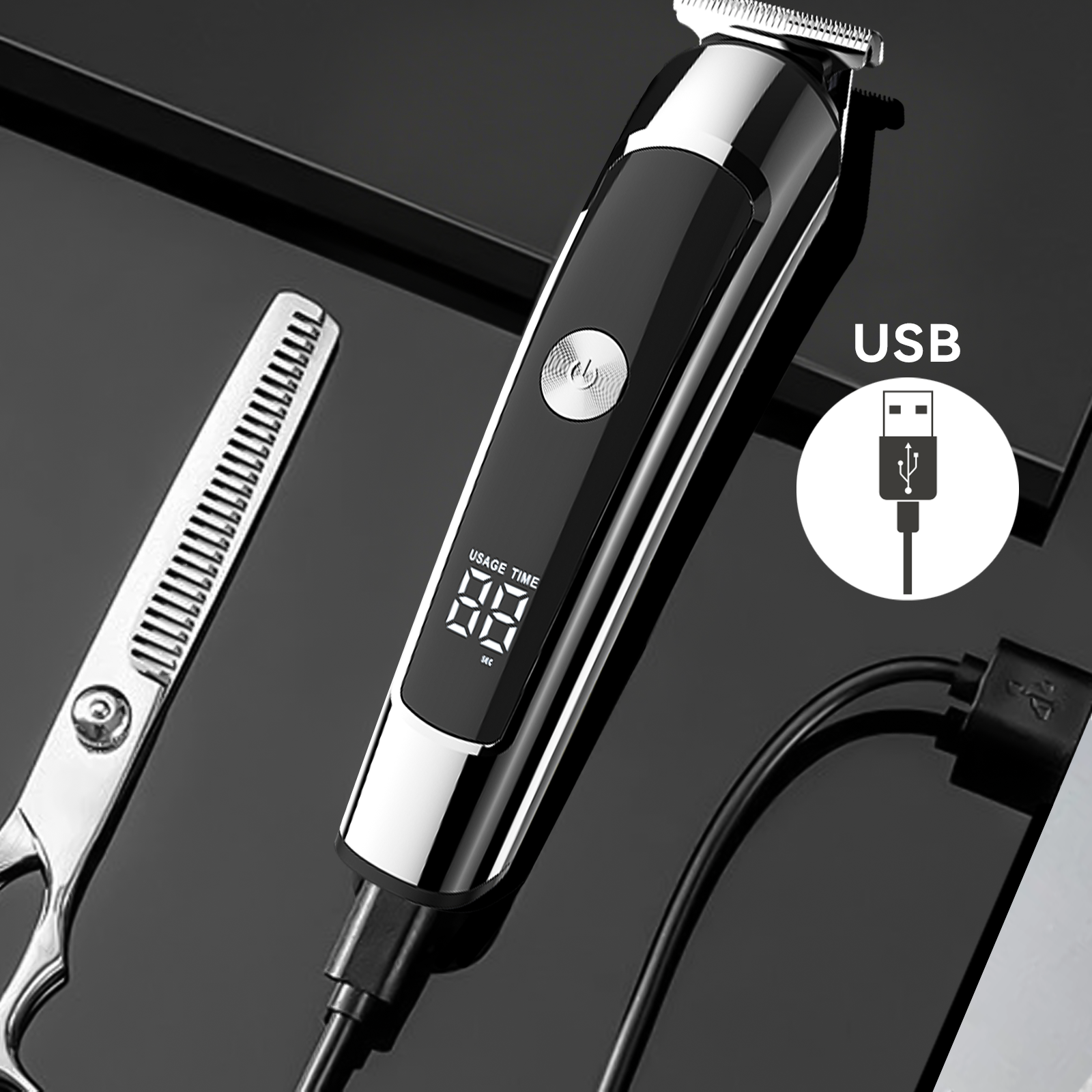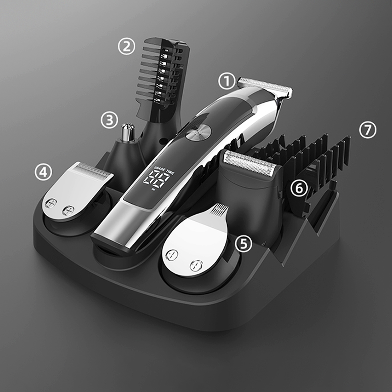 Say goodbye to cluttered countertops and a drawer full of tools! This multi-functional grooming kit is your complete personal stylist, designed for a total image refresh. It's not just a simple hair clipper—with six professional, interchangeable heads, it precisely addresses every single grooming need:U-blade clipper,T-blade detailer,engraving blade,foil shaver,nose & ear brimmer,body groomer.